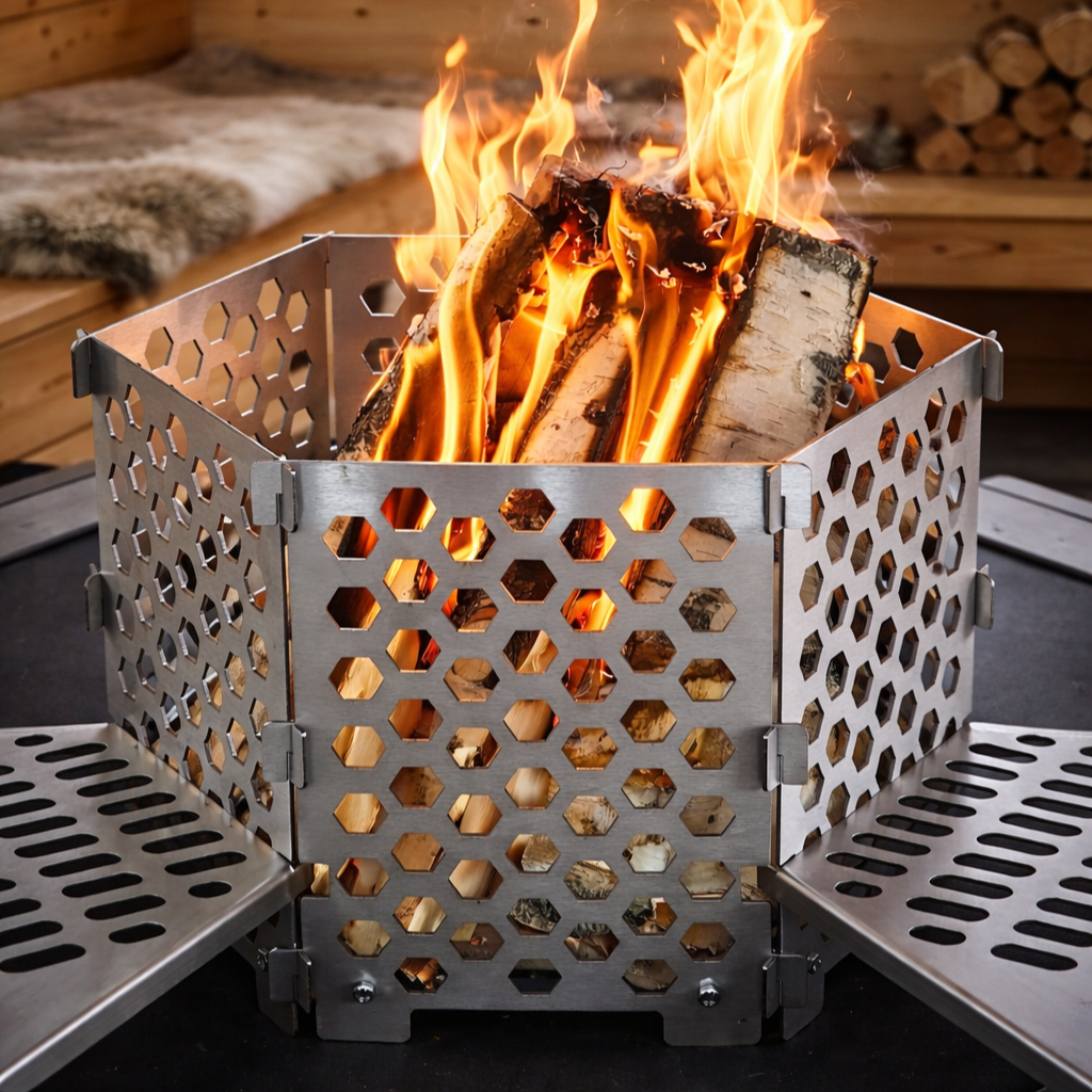 Arctic Eldkorg är tillverkad av hållbart stål i Finland. Konstruktionen är designad för att tåla upprepad värme och användning år efter år.